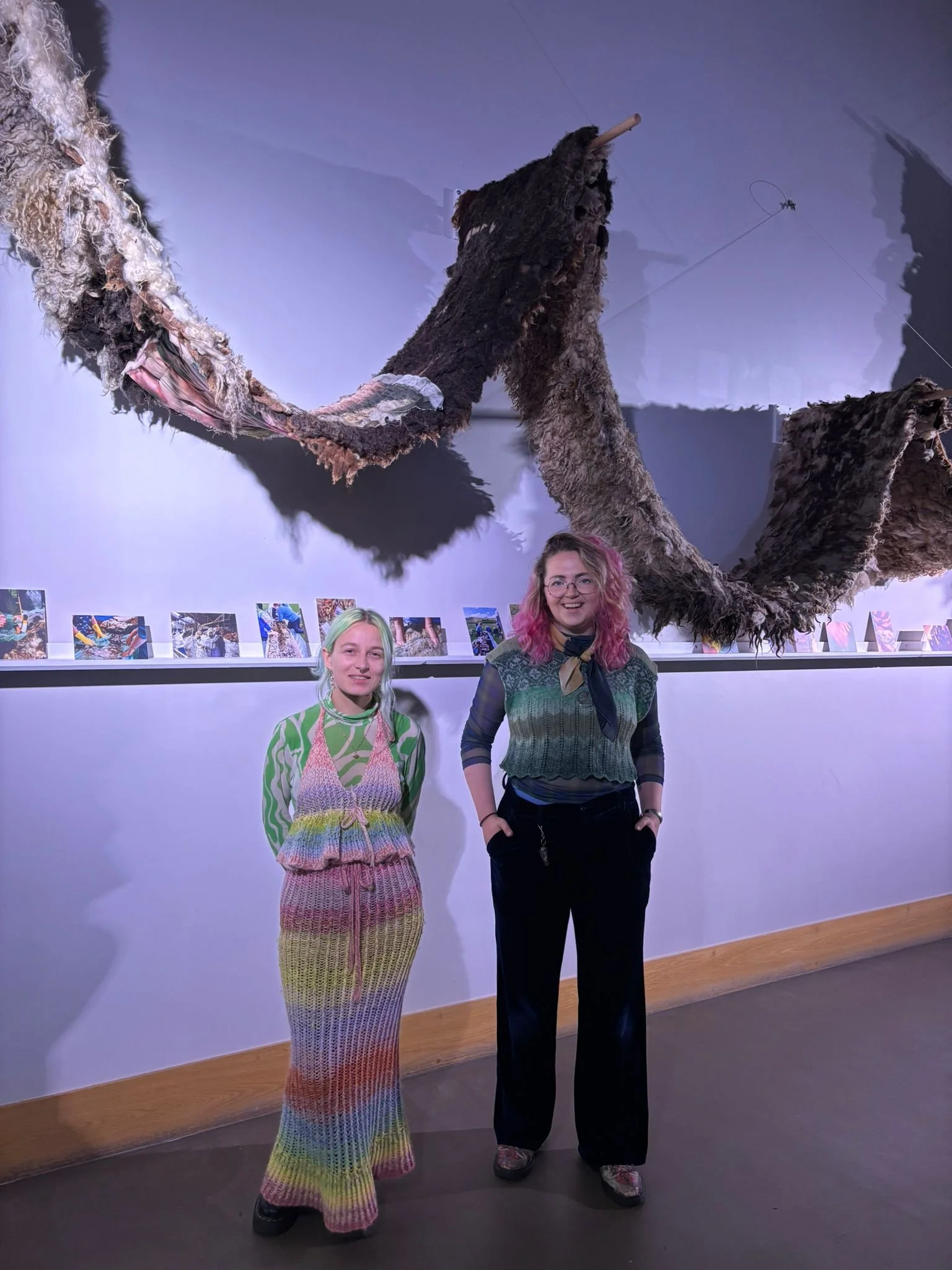 It was four days of workshop with a big team effort, and then a few weeks of just me, felting and needle felting, any bits that didn't get caught down. It was hung up at Mareel in time for Wool Week, and it’ll be there for a good while for people to come and have a look and touch it!